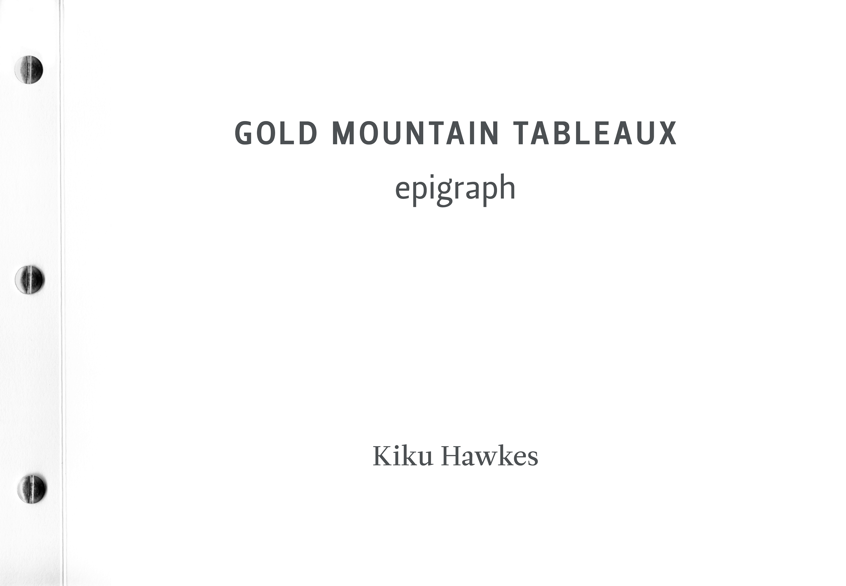Vancouver artist Kiku Hawkes released two editions of her book, Gold Mountain Tableaux: epigraph in conjunction with a studio gallery exhibition of the same title in the 2018 Capture Photography Festival, Metro Vancouver’s high-profile celebration of local and international contemporary photography.
